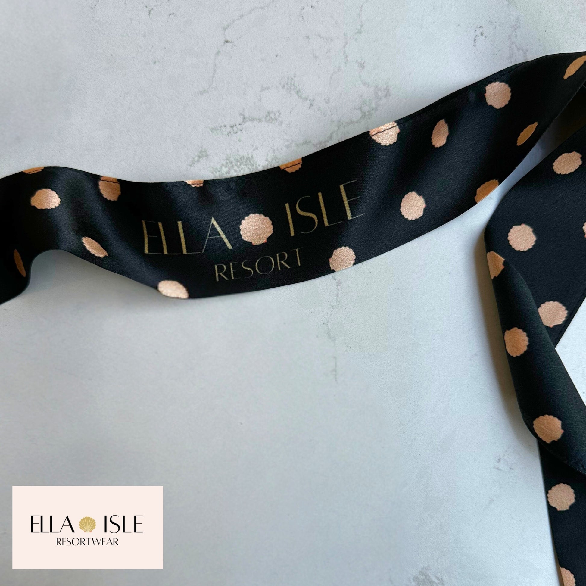 This silk twilly scarf from our Éclat Tropical collection features the signature Ella Isle shell emblem — a symbol of serenity, femininity, and island glow. Crafted in 100% natural silk, it’s a light-as-air accent piece designed to evoke effortless elegance, whether worn as a top, headscarf, necktie, or bag accessory. A celebration of slow travel, tropical intrigue, and resortside glamour — wrapped into one timeless piece.